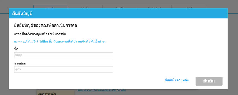ขั้นตอนที่ 2 คุณต้องเลือกธนาคารที่คุณใช้ทำรายการทั้งหมด และที่สำคัญชื่อและนามสกุลต้องเป็นจริงเท่านั้น