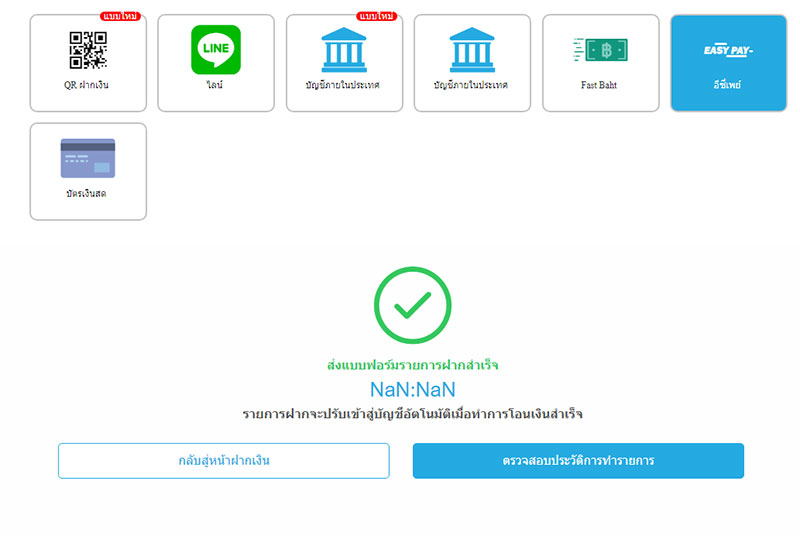 ขั้นตอนที่ 3 วิธีการทำธุรกรรม EASY PAY เมื่อคุณทำธุรกรรมเสร็จสิ้น คุณจะเห็นหน้าจอต่อไปนี้ และคุณสามารถคลิกที่ด้านขวาเพื่อ "ดูบันทึกการทำธุรกรรม"