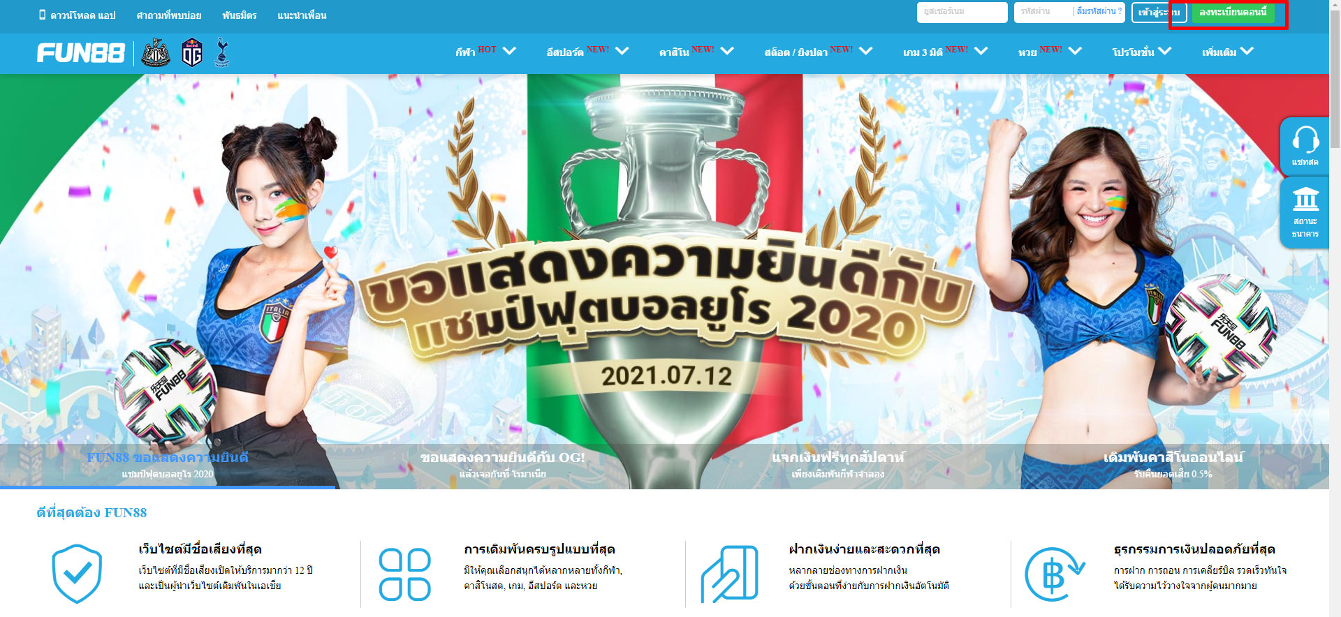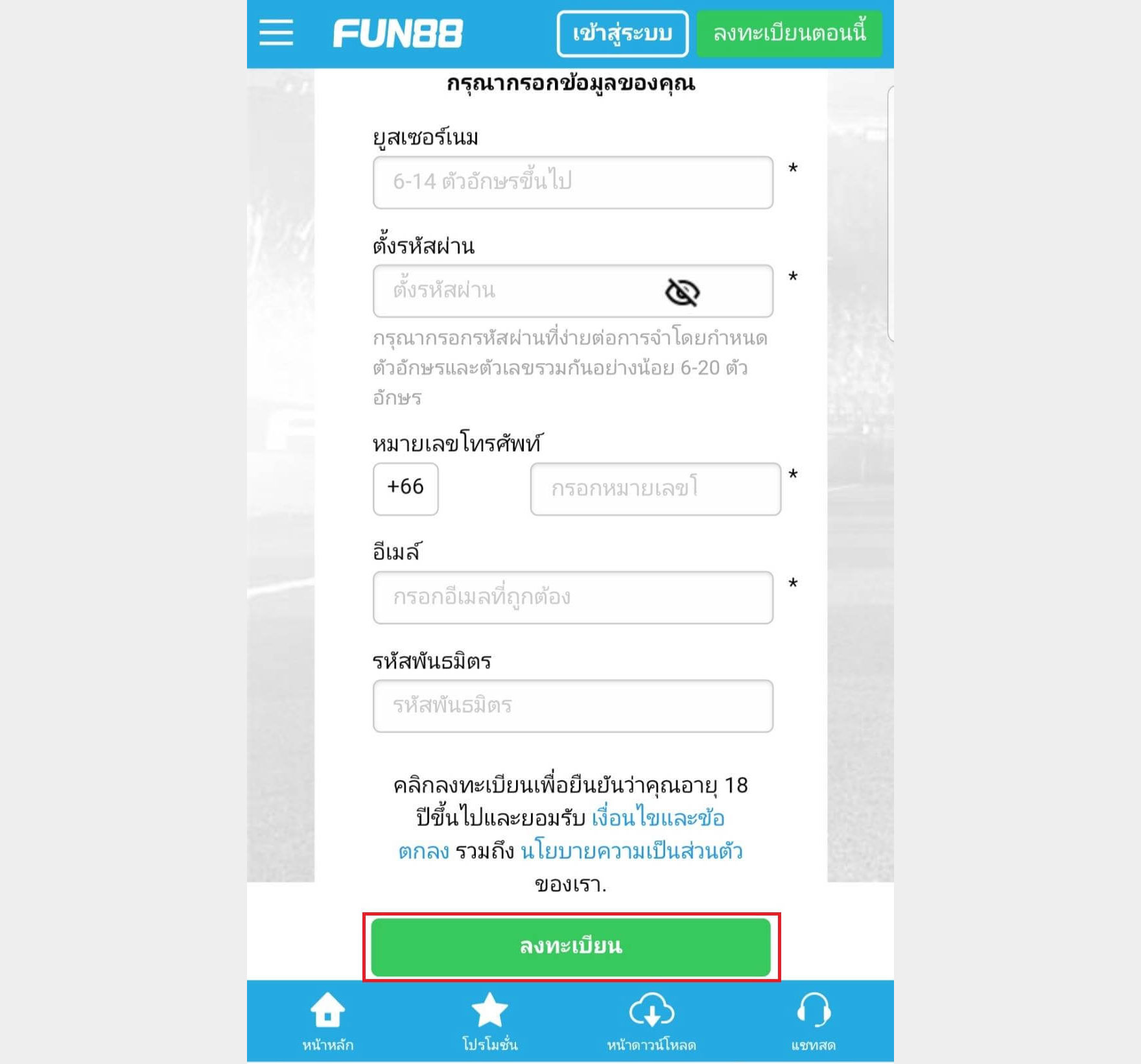 ใช้คอมพิวเตอร์ลงทะเบียน FUN88