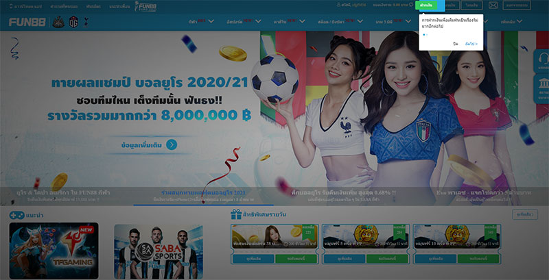 FUN88 เป็นเว็บไซต์การพนันออนไลน์ที่ได้รับความนิยมอย่างสูงในประเทศไทย มีระบบการพนันที่สมบูรณ์ที่สุด เกมความบันเทิงที่มากมายที่สุด และกิจกรรม โปรโมชันต่างๆที่หลากหลาย หากคุณชื่นชอบเกมการพนัน อย่ารีบร้อนลงทะเบียนเป็นสมาชิก FUN88 เพราะหลังจากยืนยันตัวตนในอีเมลของคุณแล้ว คุณจะได้รับ 200 แต้ม ซึ่งสามารถนำไปใช้ได้บทุกเกมบนเว็บไซต์ คุณสามารถรวมโบนัสฝากเงินครั้งแรกเพื่อใช้ ทำให้คุณมีโอกาสมากขึ้นในเกมการเดิมพันของเรา