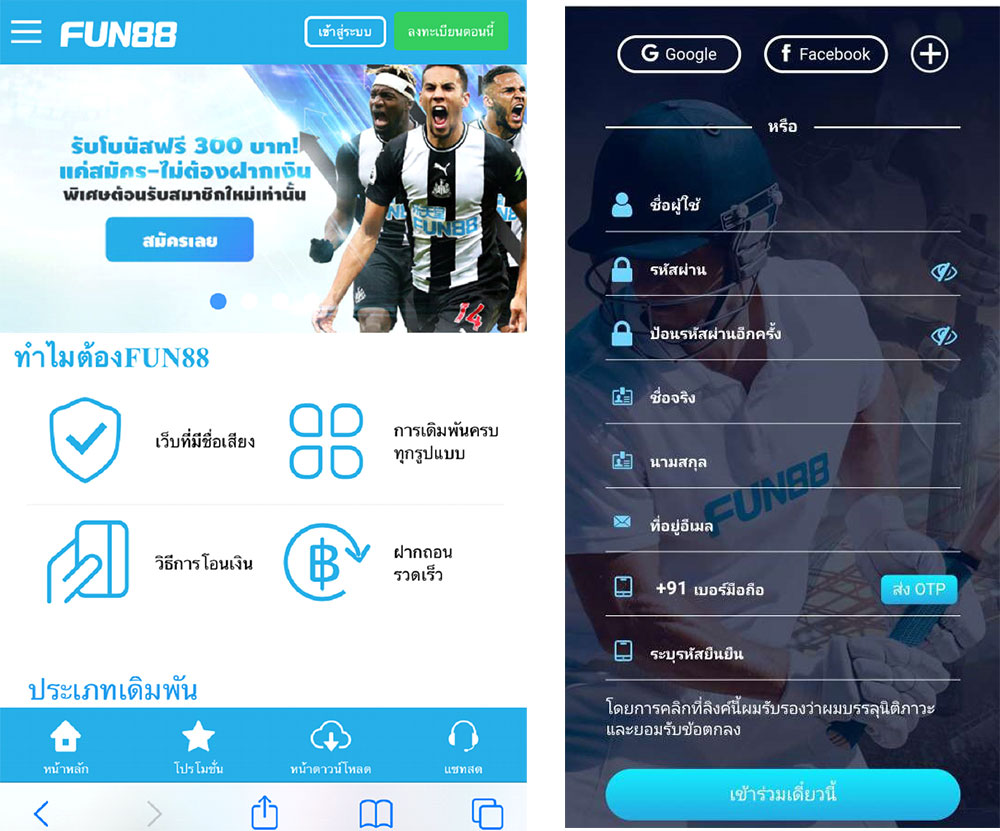 ลงทะเบียน FUN88 ด้วยมือถือ